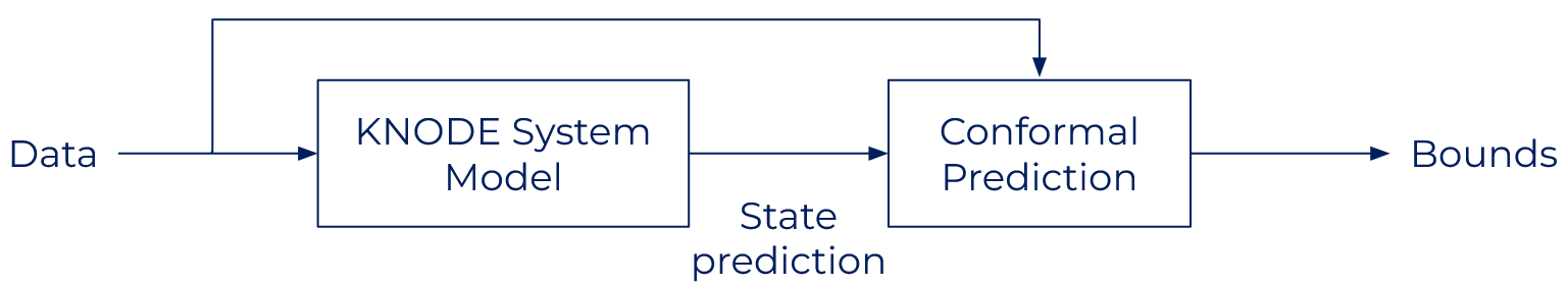 If something were to block the drone from seeing the target, then the drone might follow the prediction. Unfortuantely, it’s possible that the prediction might have some error, causing the drone to track the prediction and, in the process, lose the target. To this end, I used nonexchangeable conformal prediction (Barber et al., 2023) (arguably ODEs themselves are exchangeable, but that’s a conversation for another time). Essentially, this is how it fits in: